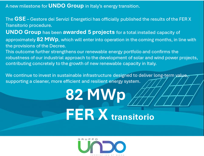 A new milestone for UNDO Group in Italy’s energy transition. The GSE – Gestore dei Servizi Energetici has officially published the